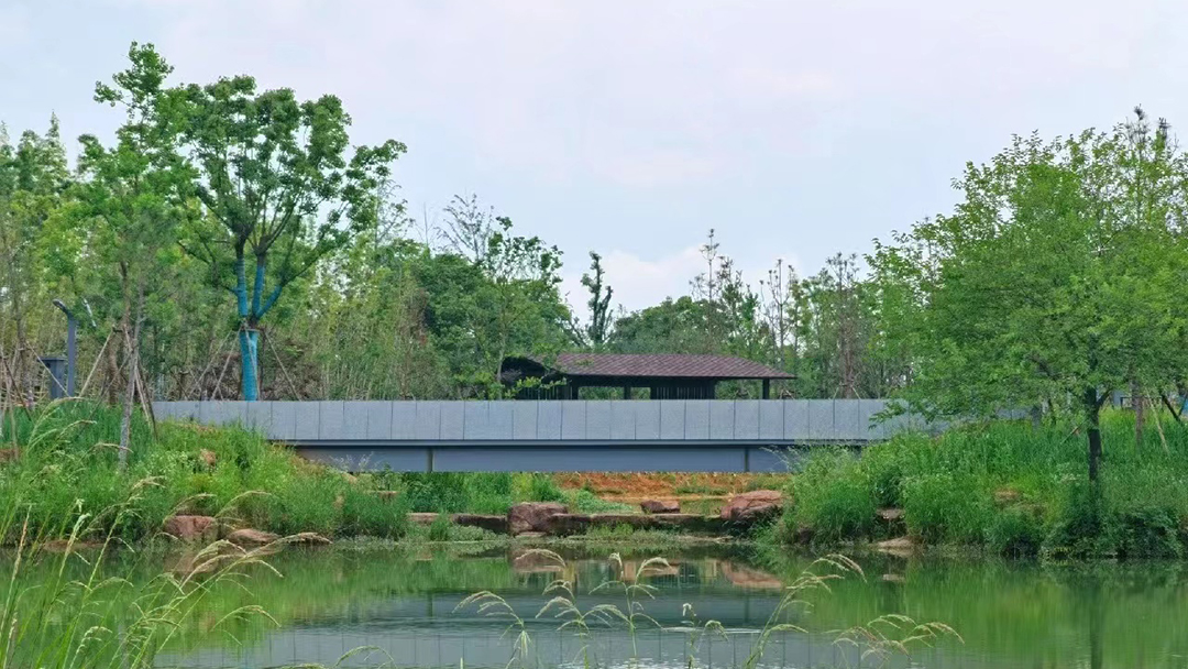 Before construction, the site of Chishan Park mainly includes demolition site, Hongyan mountain, pond, road and a small amount of vegetation. The project adapts measures to local conditions, preserves the original hilly landform features and original plant communities to the maximum extent, connects the pond water system based on the original landscape skeleton, scientifically mixes peat soil and organic fertilizer to improve sandstone red soil, builds micro terrain and Red Rock mountainous landscape according to the mountain situation, and reduces carbon emissions during construction by minimizing disturbance. And build subtropical ecological plant communities, repair damaged ecosystems, enrich plant seasonal colors, and also play a multi-level and high-efficiency carbon sequestration effect. The water bank restoration also respects nature, and uses low-carbon natural materials such as plants, logs, gravels and stones, and selects four ecological engineering methods such as natural vegetation revetment and Gabion revetment to carry out natural revetment restoration; Meanwhile, the garden road is paved with permeable materials, further implementing the concept of sponge city.